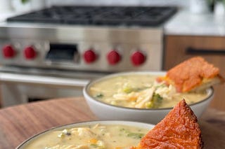 The secret to the creamy decadence of this soup (with no heavy cream!) is a potato that melts into the broth. It’s cozy and comforting, and so good with…