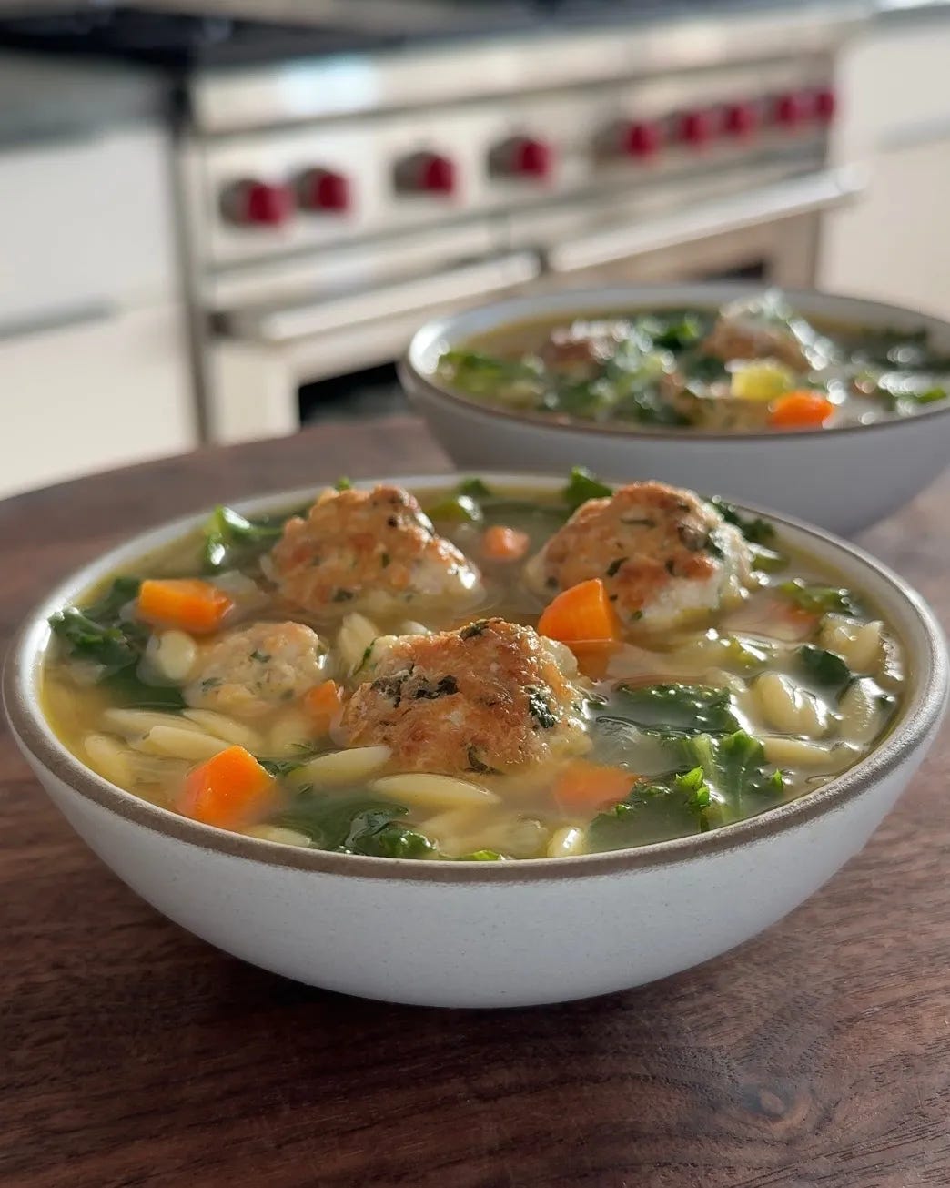 I really love this soup. It’s packed with veggies like carrots, celery, and escarole, which you add at the end so the leaves wilt in the broth but still keep a little crunch. And there’s something so comforting about meatballs in soup. Pro tip: if you think you’ll have leftovers, cook the orzo separately and add it to each bowl as you’re serving. That way you can store the soup and orzo in separate containers and avoid soggy pasta.