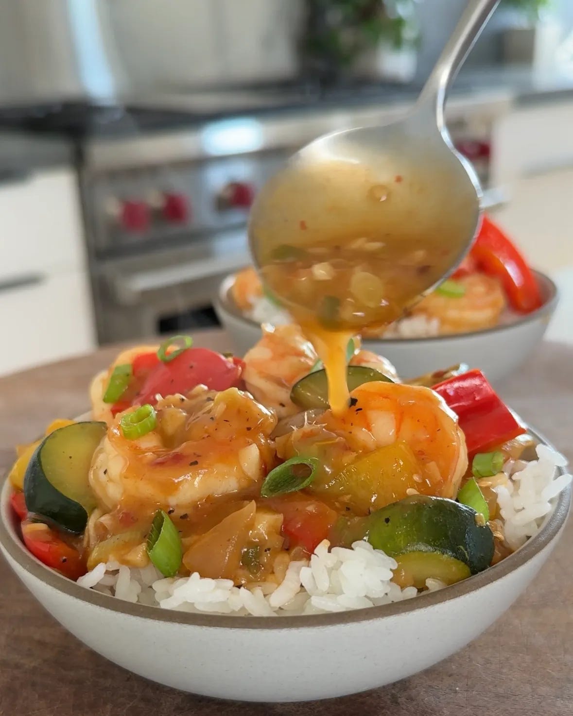 Doug and I spent the early days of the pandemic quarantining with my aunt Susan, my cousin Abby, and her husband Drew. My aunt and I cooked a lot together, and this stir fry is one of the many recipes I learned from her. Stir fries are such an easy way to load up on veggies and they come together quickly. The key is prepping everything ahead of time so all your aromatics and vegetables are chopped and the sauce is mixed before you start cooking. You can also make it with chicken breast (sliced into bite-sized pieces) instead of shrimp.