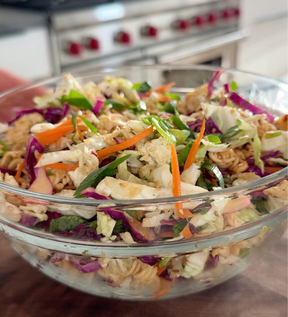 Below, you’ll also find a recipe for a ramen crunch salad my mom and I recently made. It has two kinds of cabbage, napa and red, plus lots of crunch from toasted ramen and almonds. A sesame-soy dressing gives it tons of flavor. We served it at a dinner party and everyone loved it!