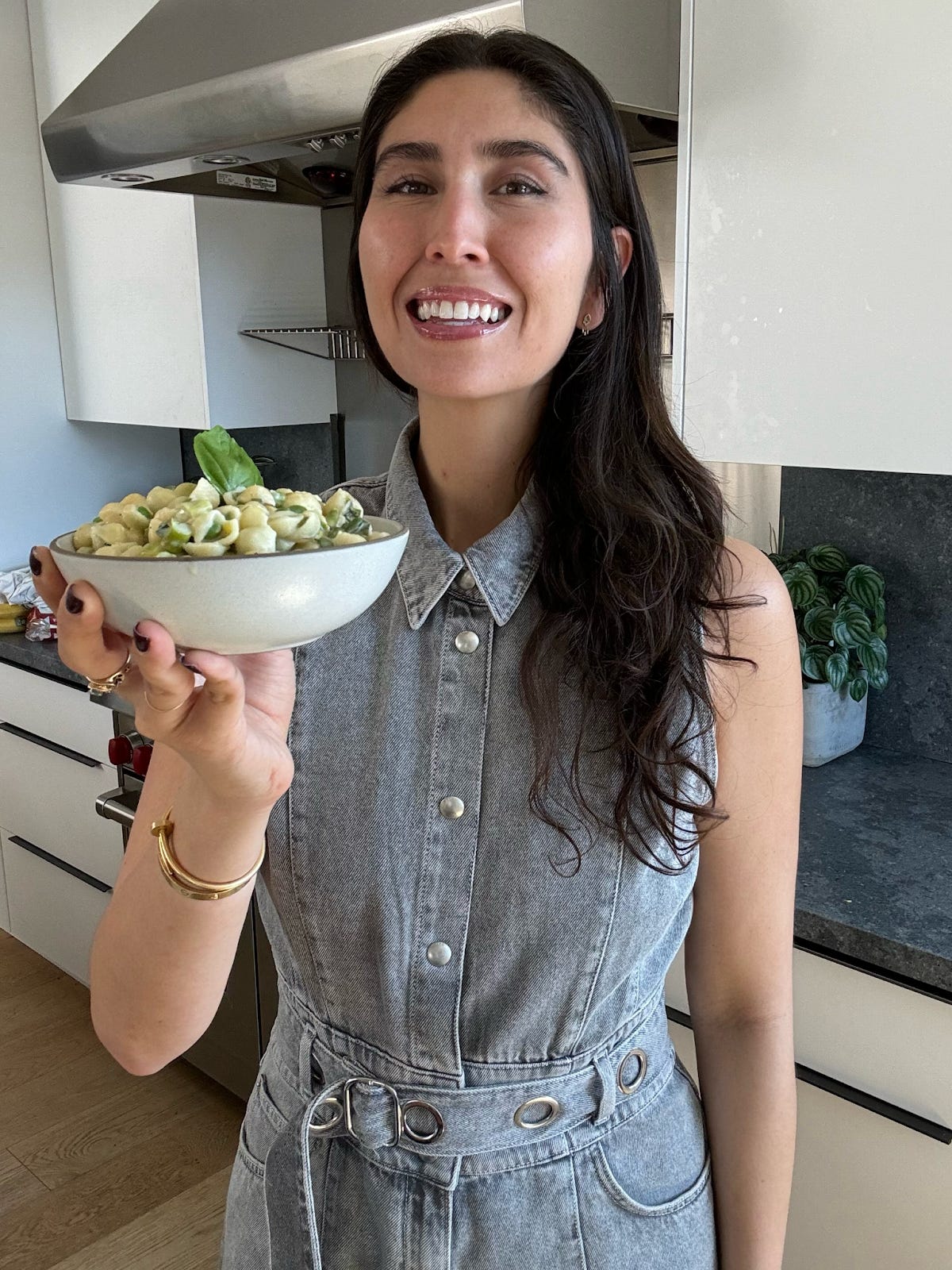 The first time I had truly good pesto was in high school on a water polo trip to Liguria, Italy—where pesto originated. (Fun fact: I used to play water polo competitively, and we’d travel to Italy to compete against local teams!) I’ve been obsessed with pesto ever since. My version adds a splash of lemon juice for brightness and that pop of acid, plus the usual pine nuts for nutty flavor. It’s one of my all-time favorite recipes.