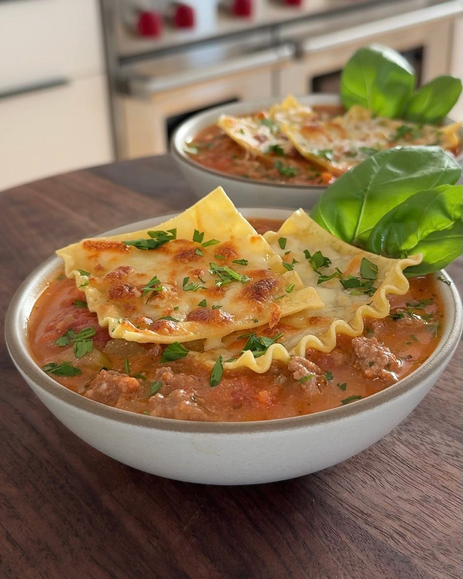 It’s the comfort and deliciousness of lasagna in an easy-to-make nourishing soup. It gets topped with cheesy lasagna squares—I’m so happy with how this one turned out!