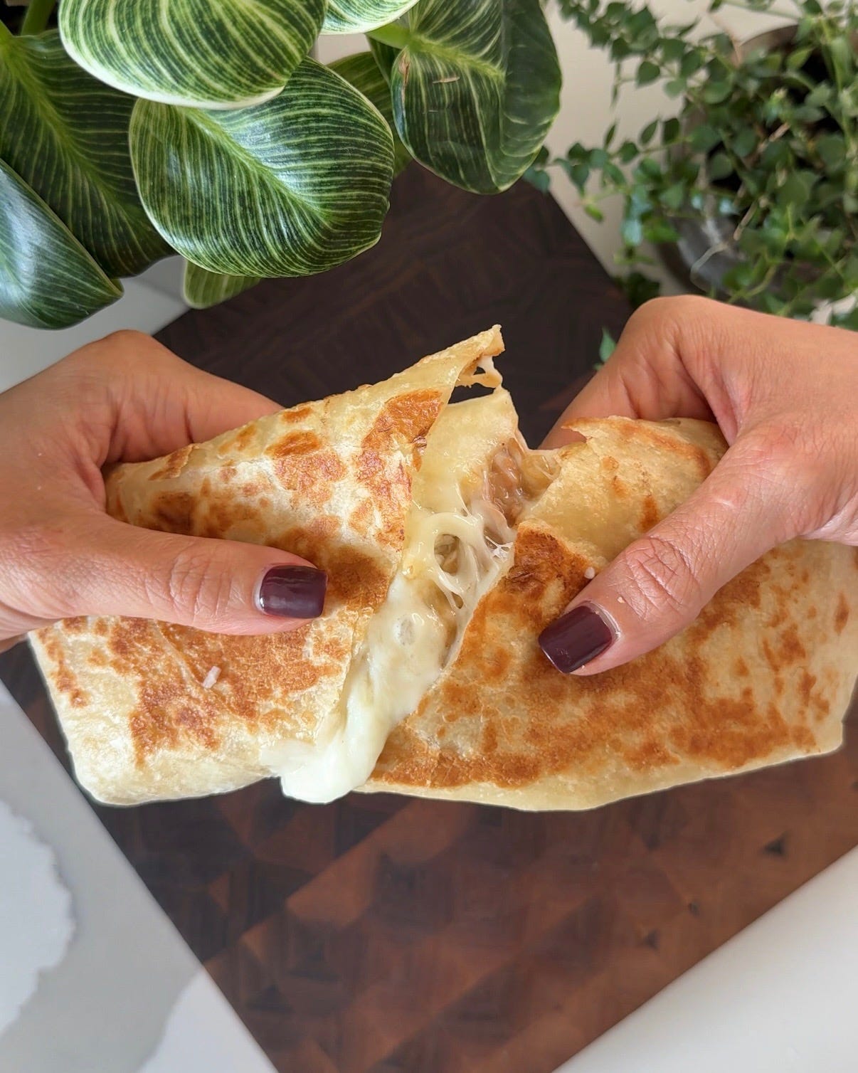 This burrito is one of the most delicious things my mom and I have made. We layered the beans with plenty of cheese and pan-fried it until the tortilla turned perfectly crispy.