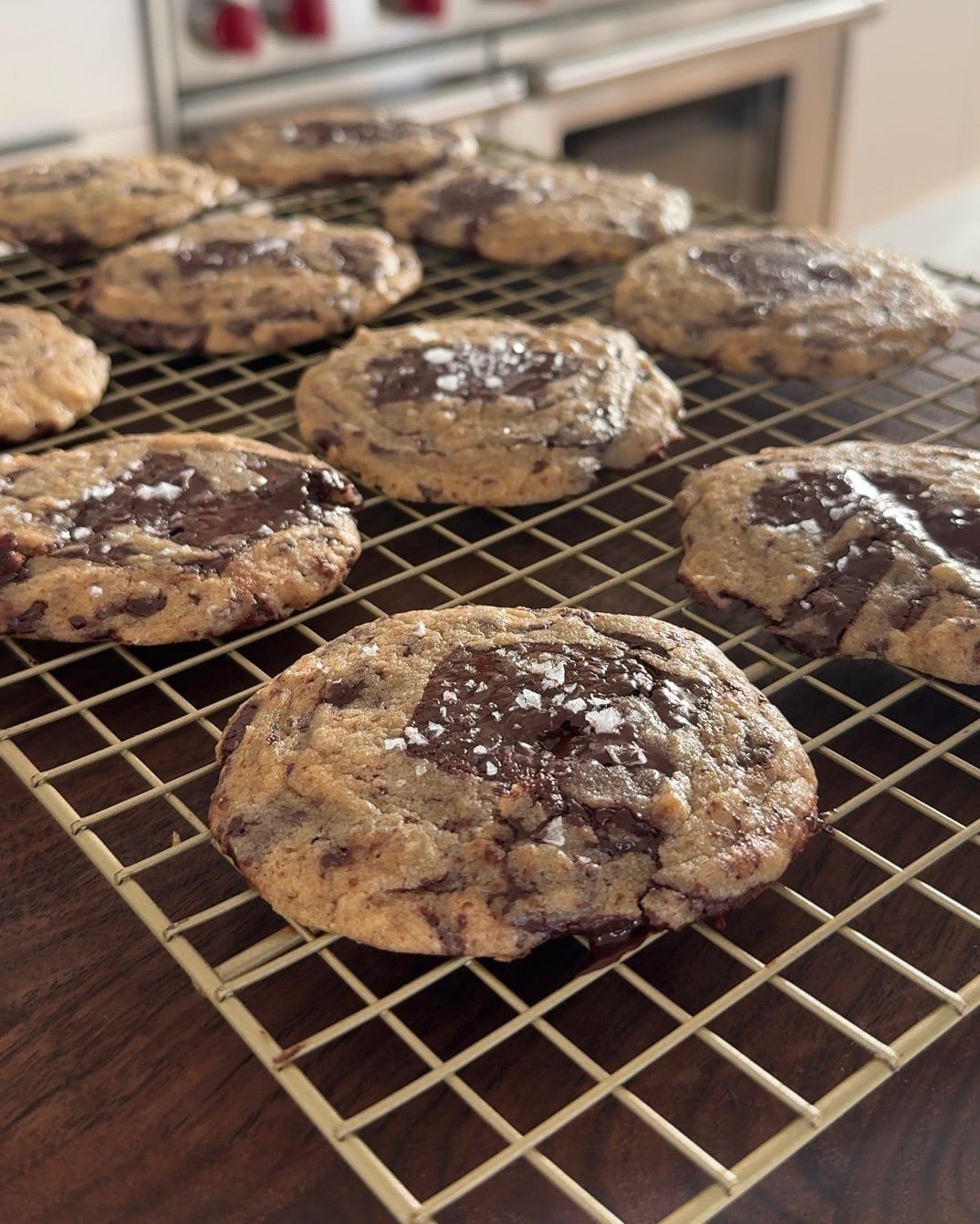 Ten years ago, the company I worked for sent this recipe in a newsletter, and ever since then, they’ve been my favorite. They’ve got almost a pound of dark chocolate folded into the dough, which gives them this amazing marbled effect. Topped with Maldon sea salt, they are salty sweet perfection!