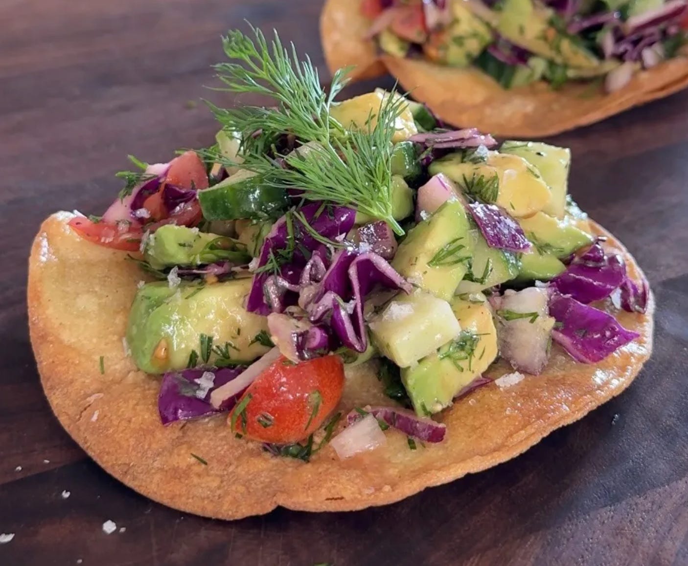 First, here’s a recipe for these phenomenal chopped salad tostadas with avocado and dill. Every bite is tangy and fresh, with a crunch from the tostada. I hope you give them a try and love them as much as I do.