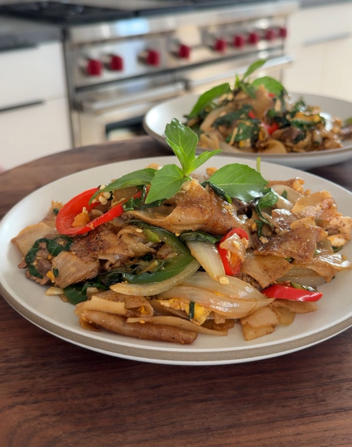 These noodles are spicy and savory, and packed with veggies and protein. Plus those chubby rice noodles are perfect for absorbing all the delicious flavors.