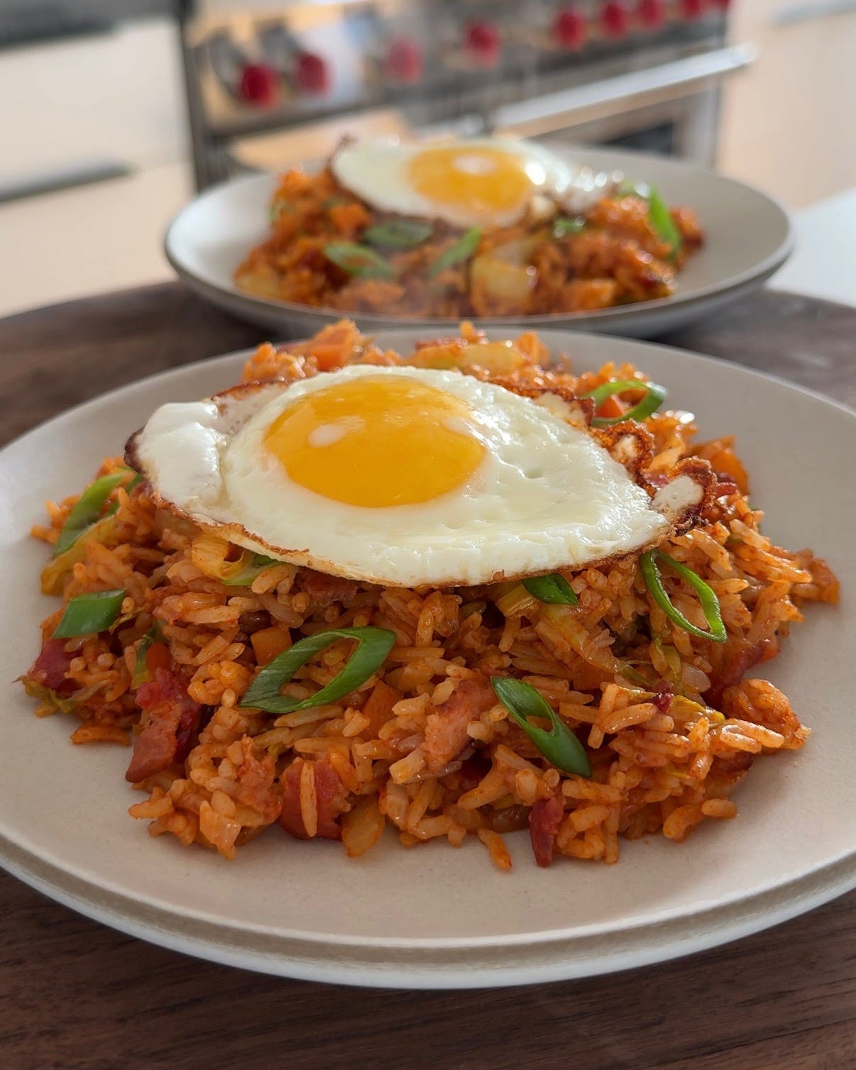 Everyone loves fried rice, and this is the way my Korean grandpa used to make his. It has bacon, napa cabbage, onion, and carrot, plus gochujang, a fermented Korean chili paste that gives the rice a delicious sweet and spicy flavor. Topped with a fried egg, it’s deeply savory and so satisfying. If you have leftover rice, it comes together in about 20 minutes.