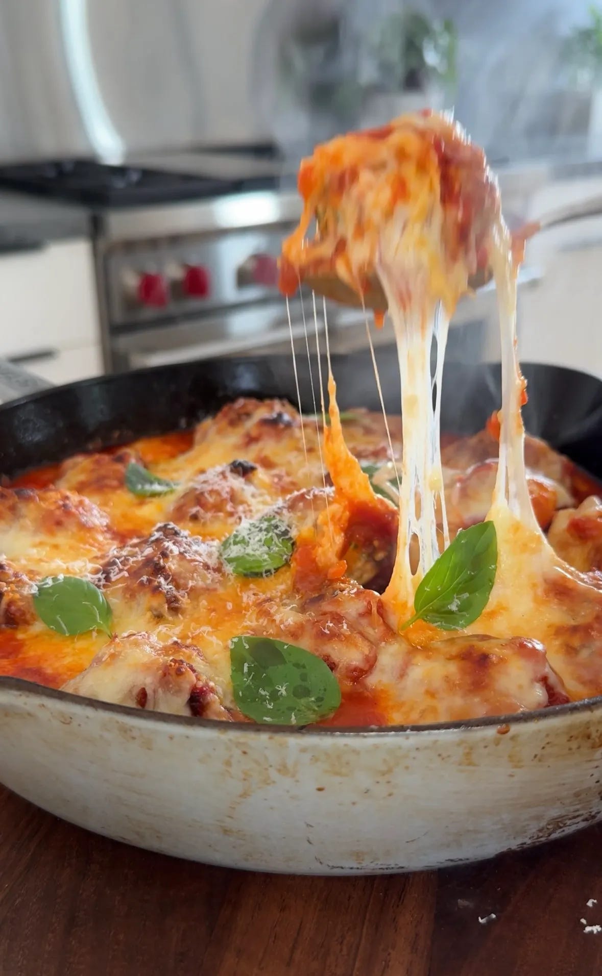 If you love chicken Parm and meatballs, this one’s for you. It’s basically a fusion of the two. The meatballs are made with a combination of ground chicken and chicken sausage for extra flavor, and then topped with melted mozzarella and Parmesan. It’s a super comforting meal that still feels light enough for a weeknight.