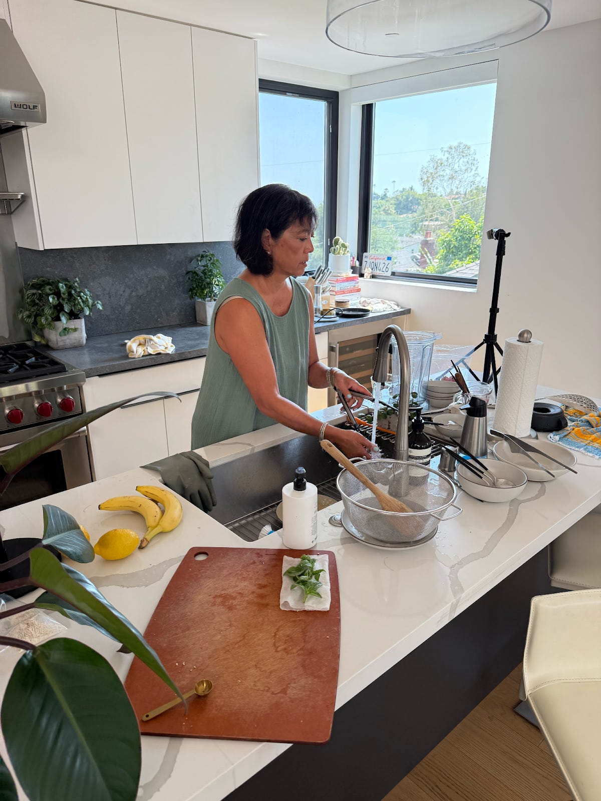 I noticed during this visit that my mom has a strong bias for action. When something needs to get done, she just does it, no waiting around. One day, the fridge fan started making weird noises. I said we’d deal with it later because we were in the middle of shooting a recipe, but she was like, “No, let’s call the manufacturer now.” We did, and they told us to vacuum the top of the fridge. She immediately pulled out the vacuum and it actually fixed the problem! She’s like that with most things in life, and it was a good reminder for me as I tend to sit on things or delay decisions, and then it can take forever.
