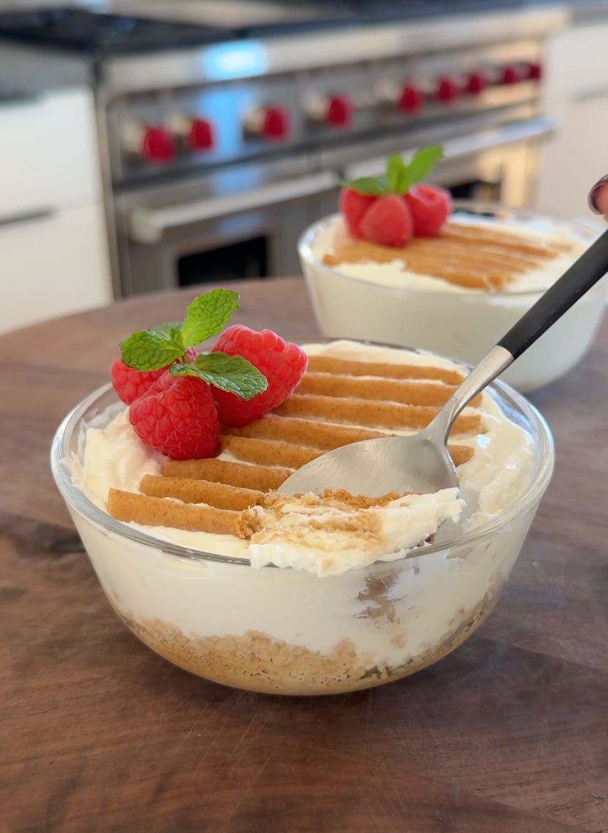 These cheesecake cups are all the rage in Japan. All you have to do is stick graham crackers in Greek yogurt and let them soften overnight until they turn into cakey layers.